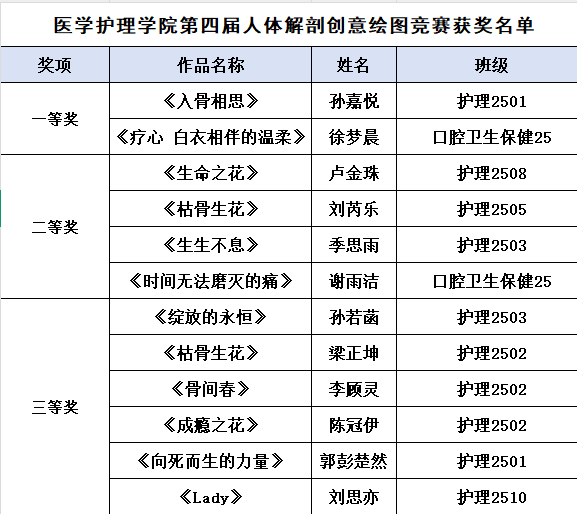 笔尖绘人体,创意展新知——医学护理学院第四届人体解剖学创意绘图竞赛圆满落幕